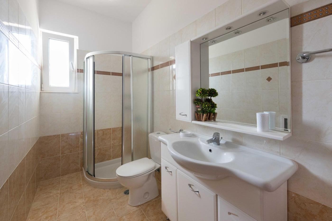 Apartment. Featuring a private entrance, this spacious apartment also is comprised of 3 bedrooms, a seating area and 2 bathrooms with a walk-in shower and a hairdryer. Guests can make meals in the kitchen that comes with a stovetop, a refrigerator, kitchenware and an oven. The air-conditioned apartment offers a flat-screen TV with satellite channels, a washing machine, soundproof walls, a tea and coffee maker as well as sea views. The unit offers 4 beds.