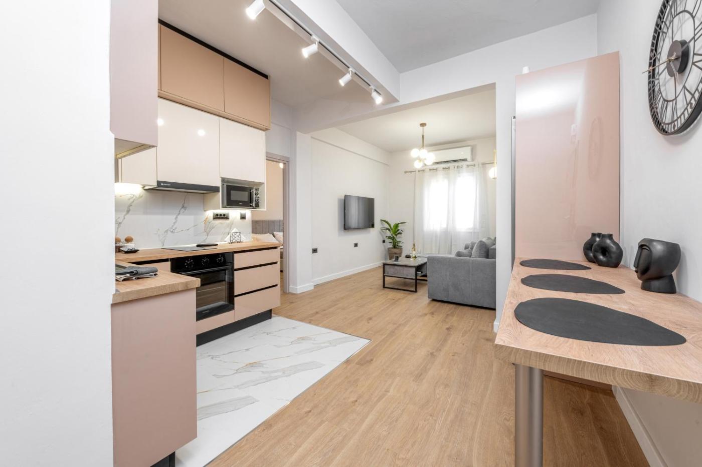 Two-Bedroom Apartment. This spacious apartment includes 1 living room, 2 separate bedrooms and 1 bathroom with a walk-in shower and free toiletries. In the fully equipped kitchen, guests will find a stovetop, a refrigerator, kitchenware and an oven. The air-conditioned apartment offers a flat-screen TV with cable channels, a washing machine, a private entrance, soundproof walls as well as a quiet street view. The unit has 3 beds.