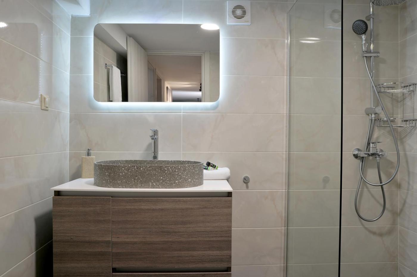 Superior Apartment. Featuring a private entrance, this air-conditioned apartment is comprised of 1 living room, 2 separate bedrooms and 1 bathroom with a walk-in shower and a bath. The fully equipped kitchen features a refrigerator, kitchenware and an oven. The spacious apartment offers a flat-screen TV with streaming services, a washing machine, soundproof walls, a tea and coffee maker as well as garden views. The unit offers 2 beds.