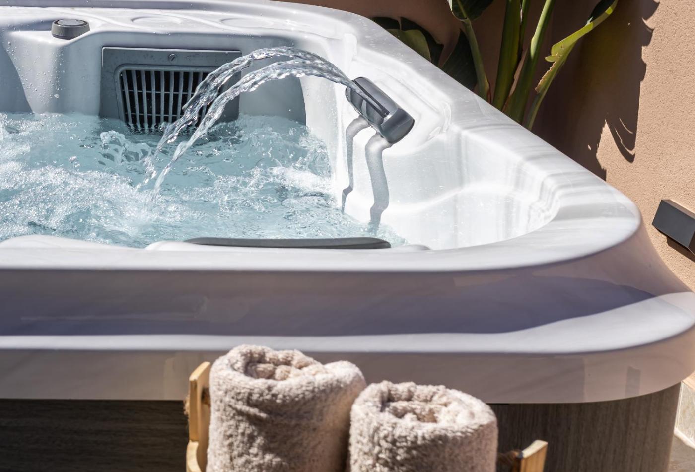 One-Bedroom House. This holiday homes special feature is the hot tub. Featuring a private entrance, this air-conditioned holiday home consists of 1 living room, 1 separate bedroom and 1 bathroom with a shower and a hairdryer. The fully equipped kitchen features a stovetop, a refrigerator, kitchenware and a microwave. Boasting a terrace with sea views, this holiday home also provides a washing machine and a flat-screen TV. The unit offers 2 beds. ;