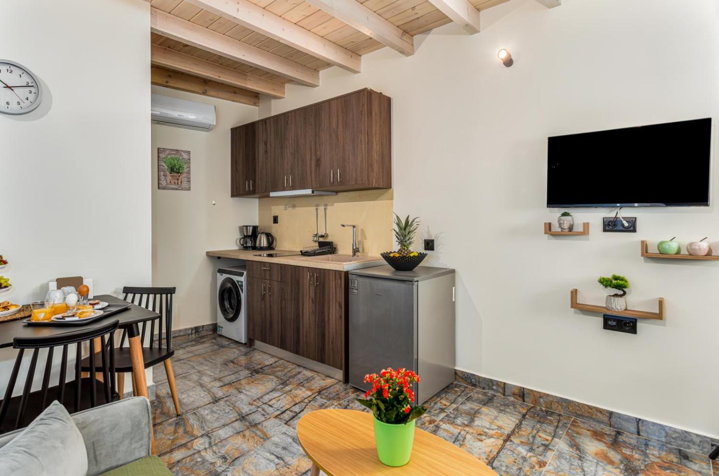 All units comprise a seating area with a sofa, a dining area, and a fully equipped kitchen with various cooking facilities, including a microwave, a toaster, a fridge and a stovetop. The units are equipped with a coffee machine, a private bathroom and free WiFi, while certain rooms here will provide you with a terrace and some have sea views. At the holiday home, units are equipped with a wardrobe and a flat-screen TV.