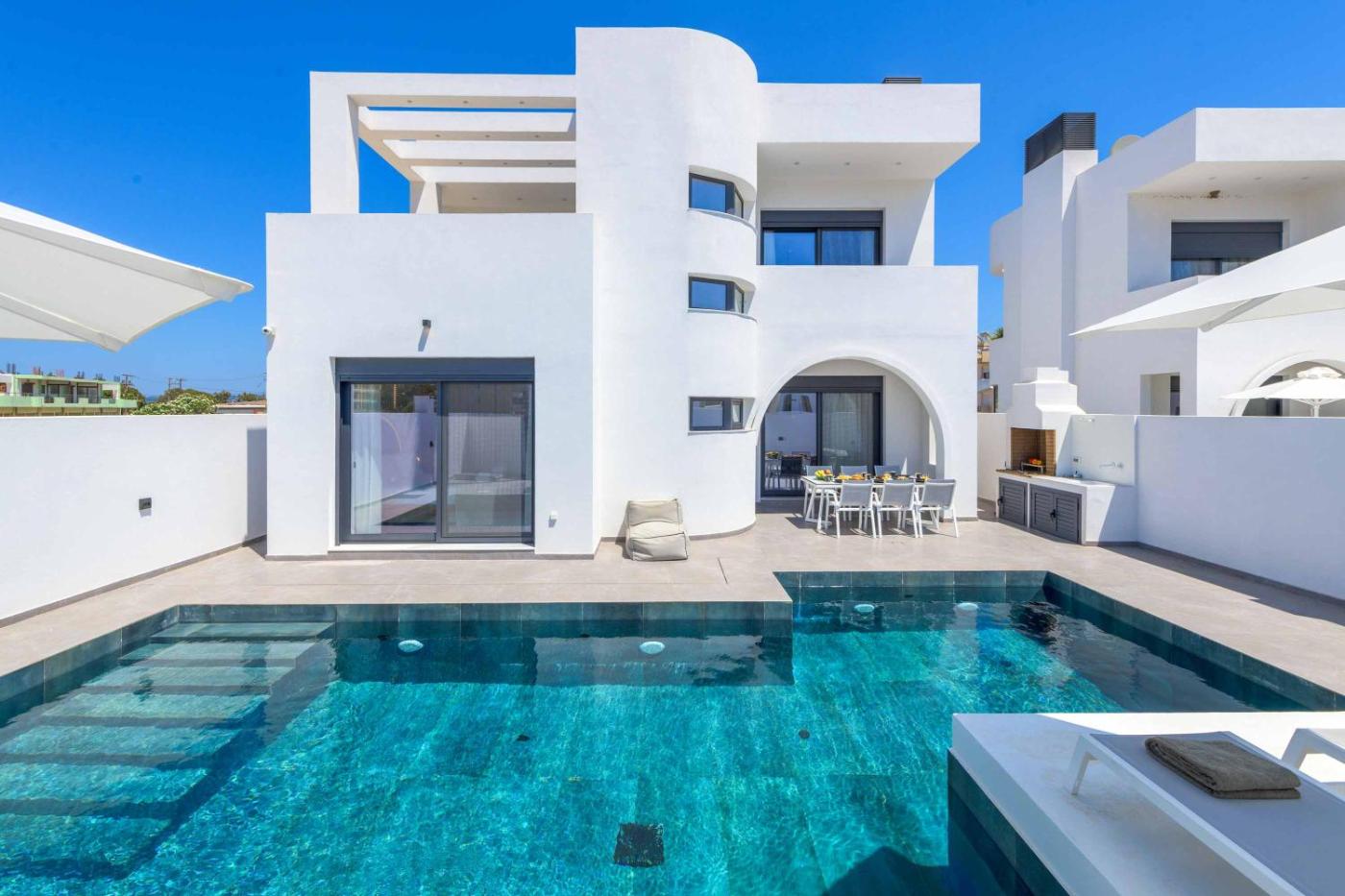 Three-Bedroom Villa. This villa features a private pool. Boasting 3 bedrooms, this villa has 3 bathrooms with a shower, a seating area and terraceyou can relax. Guests will find a refrigerator, a dishwasher, an oven and a microwave in the well-equipped kitchen. The villa also comes with a barbecue. This villa has air conditioning, a washing machine, a TV and a balcony. The unit offers 4 beds.