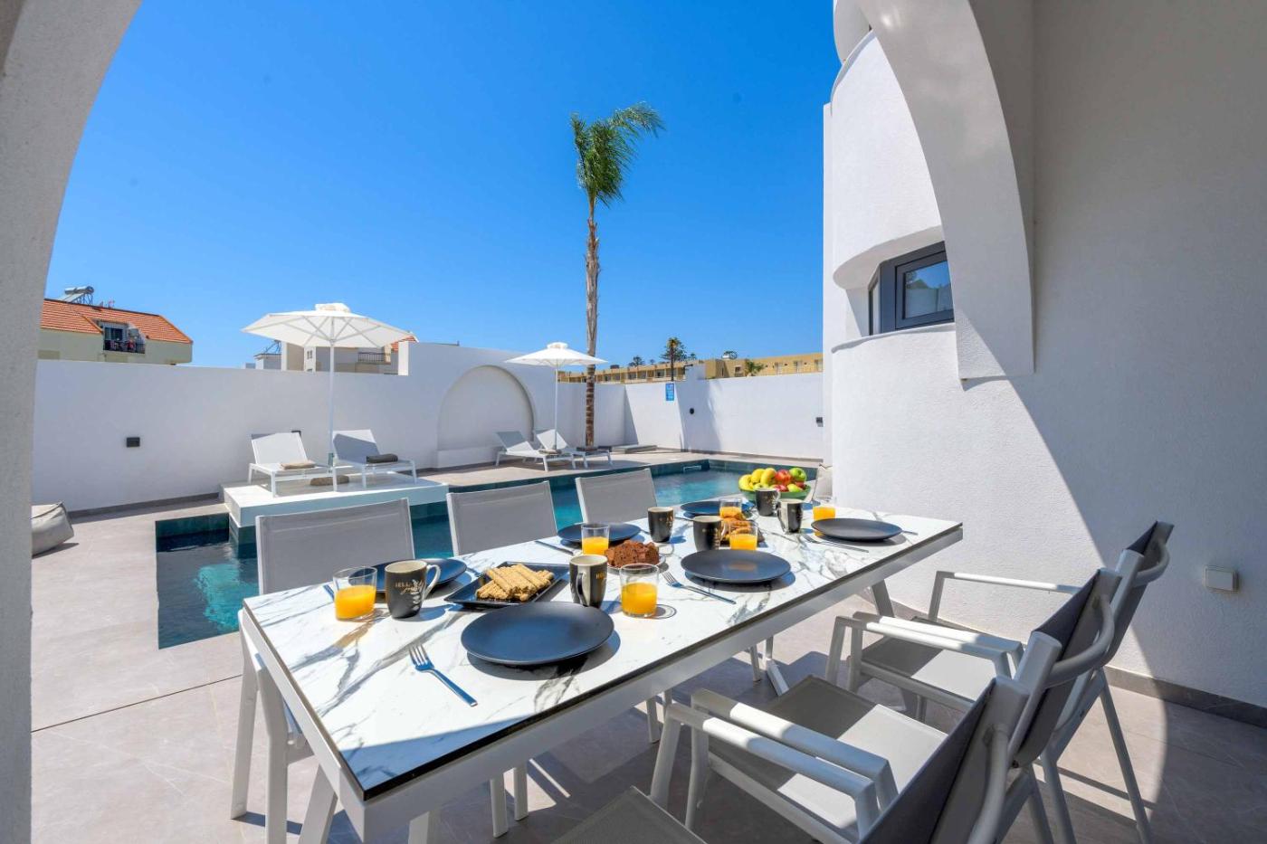 The villa conveniently has an outdoor pool.