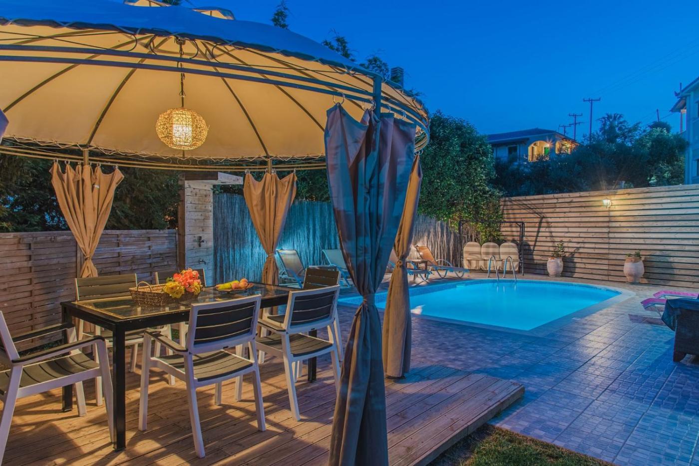 Featuring a terrace with sea views, an outdoor swimming pool and barbecue facilities, Danae Villas - 100m from beach can be found in Laganas, close to Agios Sostis Beach and 9.1 km from Agios Dionysios Church. With pool views, this accommodation offers a balcony. The villa also provides free WiFi, free private parking and facilities for disabled guests.