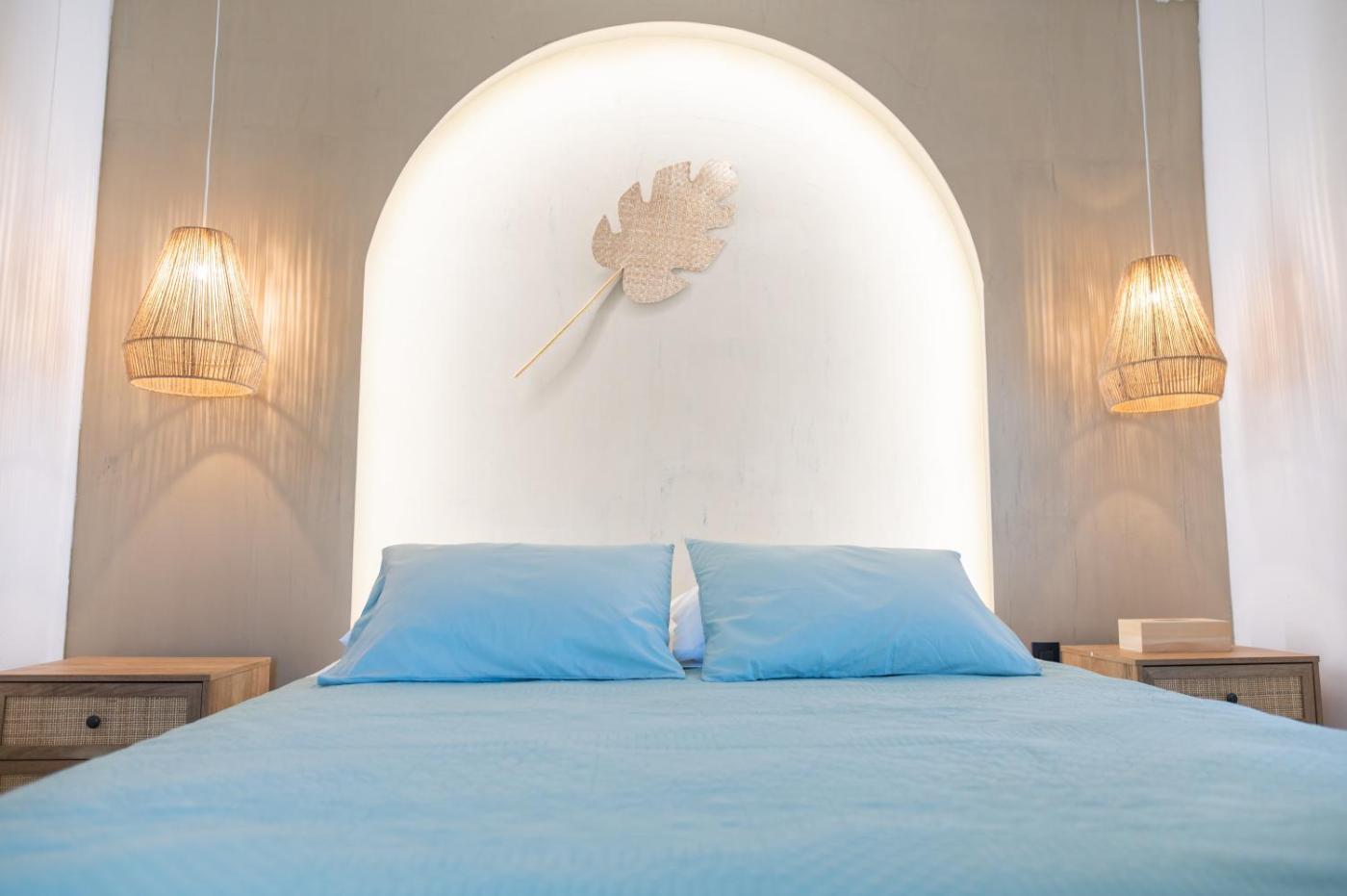 Two-Bedroom Villa. The fireplace is a top feature of this villa. Boasting a private entrance, this air-conditioned villa comes with 1 living room, 2 separate bedrooms and 1 bathroom with a walk-in shower and a hairdryer. Guests will find a stovetop, a refrigerator, kitchenware and an oven in the well-fitted kitchen. The villa also includes a barbecue. Featuring a terrace with sea views, this villa also features a washing machine and a flat-screen TV with streaming services. The unit has 3 beds.