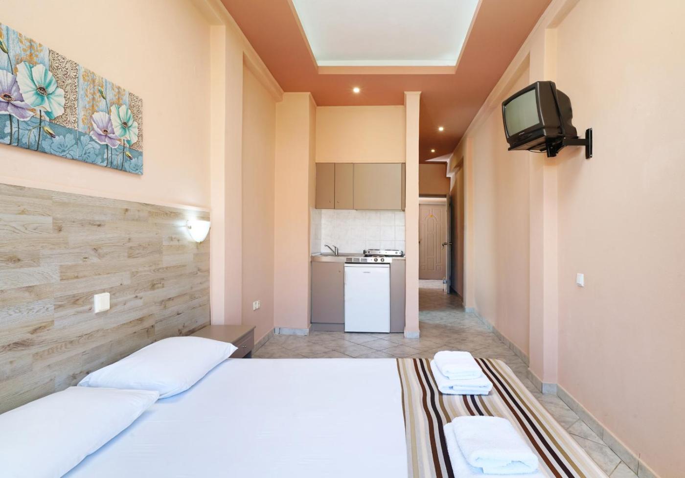 Standard Double Room. Overlooking the Aegean Sea, the garden or the pool from its private balcony, this air-conditioned studio has a kitchenette with fridge and cooking hobs. Free Wi-Fi and a TV with cable channels are also available. The studios have mountain view or Pool view or Village View. ;