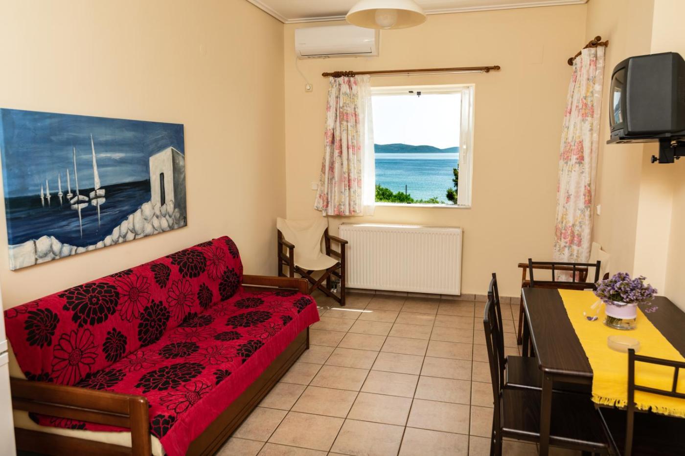 Apartment with Sea View. This air-conditioned apartment opens out to a balcony or veranda overlooking the sea. It includes a living room with TV, dining area and fridge. The private bathroom comes with a shower and a hairdryer. Free WiFi is available.